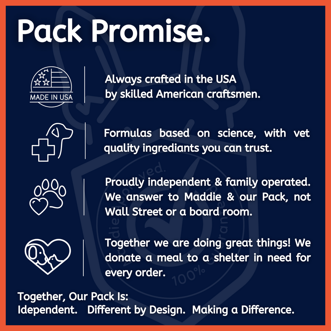 Our Pack Promise and Maddie Approved 365 Day Tail Wag Guarantee allows you to feel good about every purchase.
